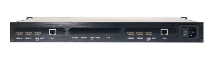 设备接口丰富,具备 4 路 HDMI 输入、2 路 HDMI 输出及 3 路 RJ45 以太网接口,支持 20 路 IP 视频流输入,可自适应多种分辨率,并支持输出分辨率自定义设置。在实际视频会议应用中,面对多地不同分辨率的视频信号输入,设备能快速适配,确保画面清晰呈现。其轻量化处理能力尤为突出,4K 25 帧 16Mbps 视频轻量化后码流均值 1536Kbps,1080P 25 帧 4Mbps 视频均值 384Kbps,且延时仅 90ms,画面无失真、卡顿,保障会议沟通顺畅。