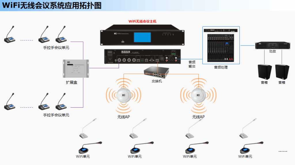 系统优势显著:5GHz 频段抗干扰强,搭配 AES 加密与 WPA/WPA2 安全技术保障信息安全;功能高度集中,支持远程控制与双机备份;提供多种发言单元可选,电子桌牌实时更新人员信息;低延时传输适配视频会议声场需求,PC 端智能管理设备状态,还自带消防联动接口,全方位满足会展中心会议灵活、安全、高效的需求。