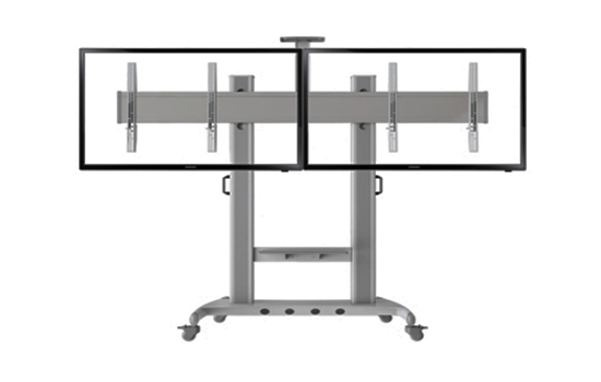 这款支架适用 42 寸到 65 寸的双屏横装电视,能满足不同视频会议场景对显示设备的需求。其承重可达 130Kg,即使安装两台大尺寸电视也能稳稳支撑,确保设备在会议过程中不会出现晃动或移位,为视频画面的稳定呈现提供基础保障。