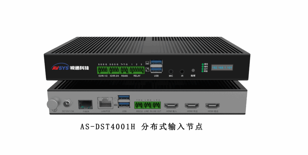AS-DST4001H 分布式 4K 输入节点作为系统编码输入端,承担着将各类信号高效转化为数字编码的关键任务,为后续的处理与传输奠定基础;AS-DSR4001H 分布式 4K 输出节点则作为编码输出端,将处理后的数字信号精准输出,保障显示终端的高质量画面呈现 。二者协同工作,确保了系统信号传输的完整性与稳定性。