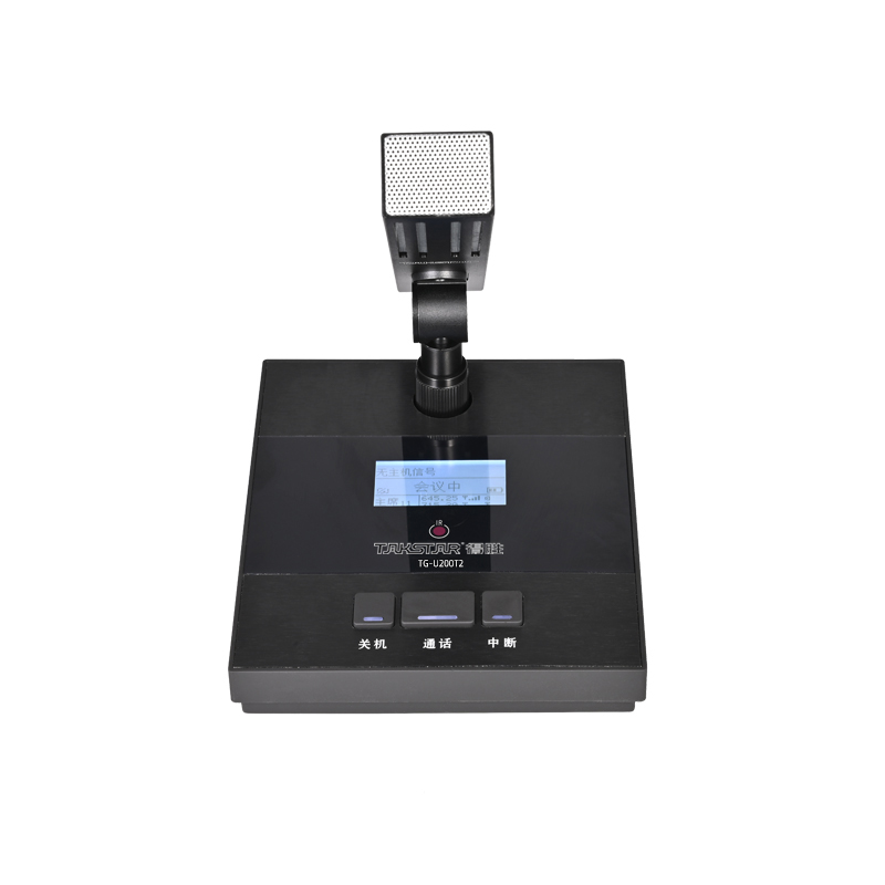TG-U200T2无线会议麦克风,专为视频会议与演讲场景打造,采用UHF频段与心型指向设计,搭配电容式高保真咪头,拾音距离远、灵敏度高且失真极小,能清晰捕捉发言声,搭配可自由选择的长咪杆U1或短咪杆U2,适配各类桌面摆放需求。12864点阵屏让设备参数直观呈现,用户可实时掌握工作状态。