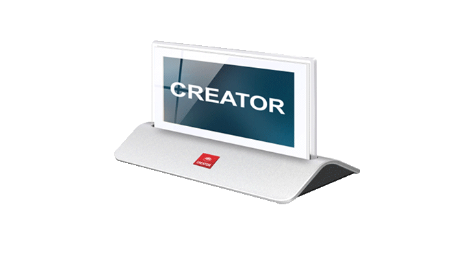 CR-TOUCH2300 10.36 寸触摸电子桌牌是视频会议场景中兼具视觉张力与交互便捷性的设备,采用双屏显示设计,搭配真彩 10 位色深与鲜艳红绿蓝配色,可清晰呈现与会人员姓名、职位等信息;底座为一体成型铝合金材质,搭配炫丽有机玻璃透明边框,整体造型兼具科技感与时尚感,同时支持触摸操作,为视频会议增添便捷交互体验。