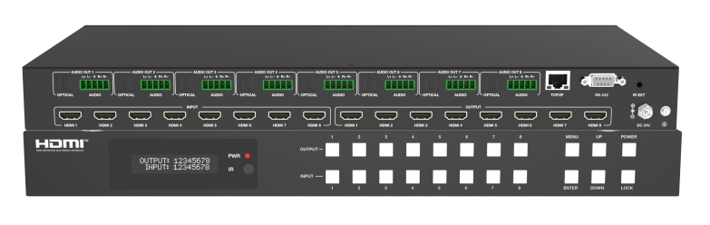UHD-MAX0808 4K 视频混合矩阵,是一款配置灵活的无缝切换设备,采用高性能硬件设计,支持 8 路信号输入输出,可完美处理各类高清数字 / 模拟信号,最大分辨率达 4K x 2K 且向下兼容全规格低分辨率,还具备双向 RS-232 分配切换、全板卡热插拔及坐席 KVM 管理功能,为超微型场景视频会议及各行业信号处理提供一站式解决方案。