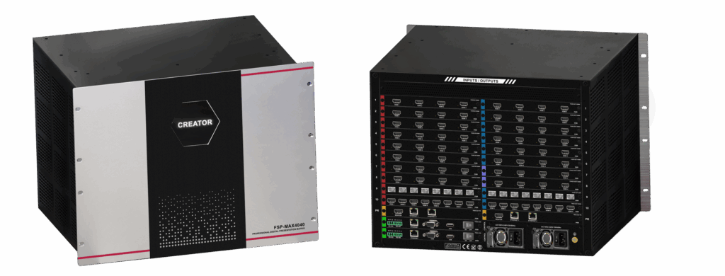 FSP-MAX80 作为专为微型视频会议设计的传信矩阵,采用新一代 FPGA 堆叠架构,突破传统 Crosspoint Switch 架构的独立带宽限制,搭配多路复合通道技术,大幅提升矩阵传输带宽与信号交换效率,同时以全国产化设计实现混合切换矩阵硬件架构升级,为微型会议的信号传输提供高效、安全的支撑。