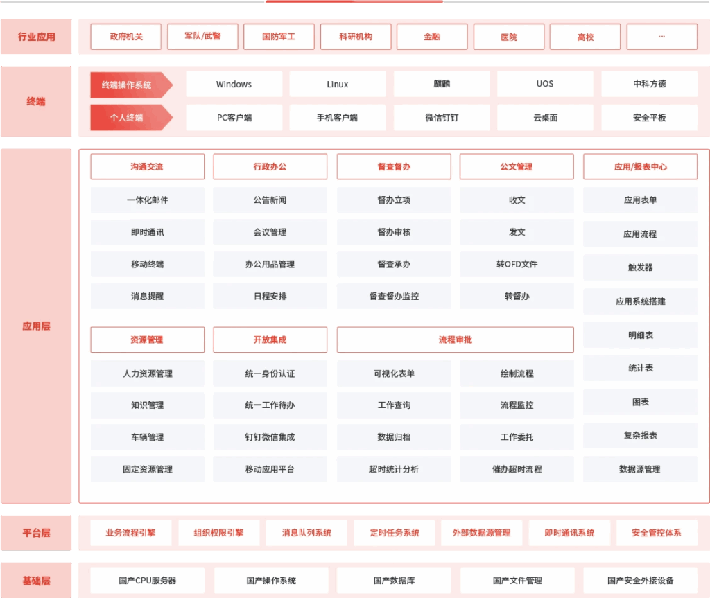 通达信创综合办公平台是基于信创环境打造的办公系统,既能实现高效协同办公,又能强化信息安全保护,还可适配视频会议场景,通过信创软硬件兼容支撑远程协作,满足党政机关、事业单位等用户的数字化办公需求,助力平滑完成信创 OA 改造。
