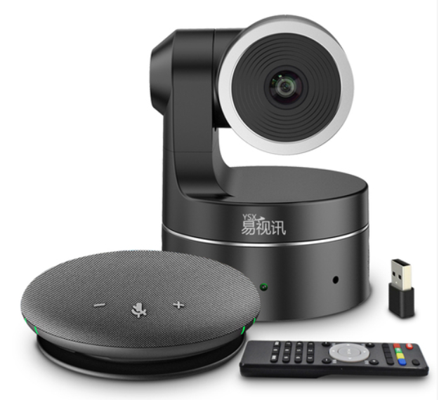 YSX-NC1 音视频会议套装专为 2-10 人小空间设计,摄像头与全向麦的组合精准解决小型视频会议 “取景覆盖不全、收音模糊” 的问题。摄像头搭载 1/2.5″ CMOS 传感器(208 万有效像素),固定输出 1920*1080@30 帧高清画面,110° 广角镜头能完整覆盖小会议室场景,配合 355° 水平、100° 垂直云台与红外遥控,可灵活调整取景角度,>50dB 信噪比与自动白平衡、曝光功能,确保视频画面清晰稳定,5 米长 USB 数据线还能适配不同设备摆放需求。