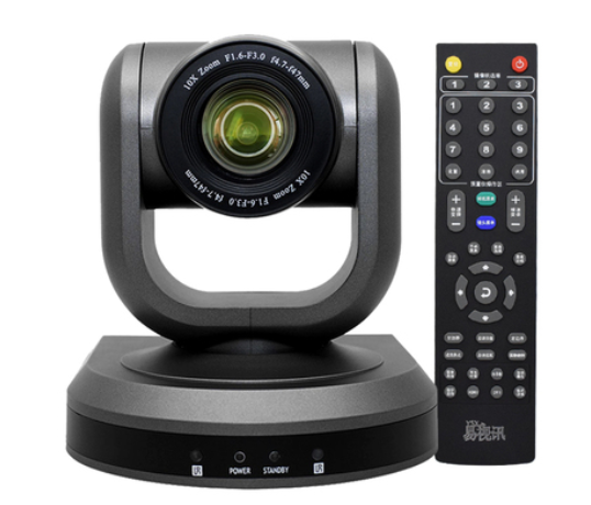 这款专为视频会议设计的 1080P 摄像头,核心配置贴合会议场景实用需求:搭载 SONY 1/2.9 英寸逐行扫描 CMOS 传感器,有效像素达 238 万,可稳定输出 19201080 全高清画面,同时兼容 1280720、640*480 等分辨率,适配不同网络带宽与设备需求;配备 10 倍光学变焦镜头(F=4.7~47mm,光圈 F1.6~F2.5),不仅能清晰捕捉 8 米左右的参会人员表情或演示文稿细节,还可通过镜头 5.8°~57.6° 的视场角调节,灵活切换特写与全景画面,满足小组讨论、多人会议等不同场景的画面采集需求。