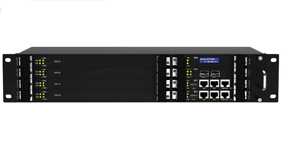 鼎信通达 MTG5000 智能语音网关,针对企业 / 行业 / 运营商需求打造,3.5U 机架式设计支持最大 64 E1/T1 高密度接入;集成 IP 语音、IP 传真、语音识别及 Modem 功能,配备 1+1 电源冗余、双主控热备、双网口冗余等多维度备份机制,还支持 G.711A/U 等多类编解码,能为视频会议提供运营商级语音支撑。