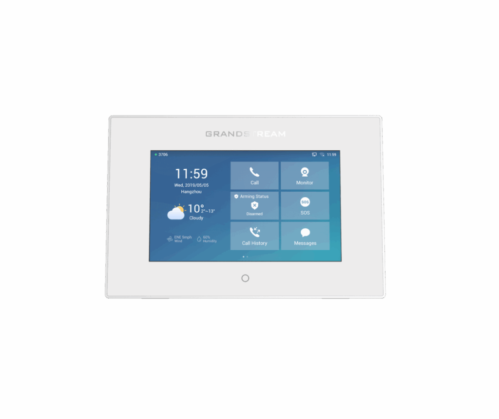GSC3570 智能可视对讲平台配备 7 英寸 1024×600 电容触摸屏,支持灵敏触控操作,搭载全双工 2 路高清音频与先进回声消除技术,同时具备 PoE 供电、双频 802.11 ac Wi-Fi 及 100Mbps 网络端口,可通过 4 路报警输入与 1 路报警输出端口联动设备,还采用 TLS 和 SRTP 安全加密技术保障数据安全,为企业与社区提供门禁对讲、监控一体化安防方案。