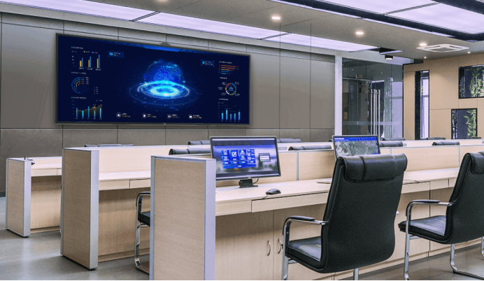 前沿的缝隙发声设计,将 2 个中高音单元和 1 个重低音单元融入下边框窄键旗,兼顾细腻音效与科技美感。性能上,搭载 i7 高性能处理器与独立显卡,2GB 高速显存可轻松运行专业应用,稳定流畅,适配展厅、大型会议室、阶梯教室、指挥监控中心等多种场景,满足协作演示与数据展示需求。